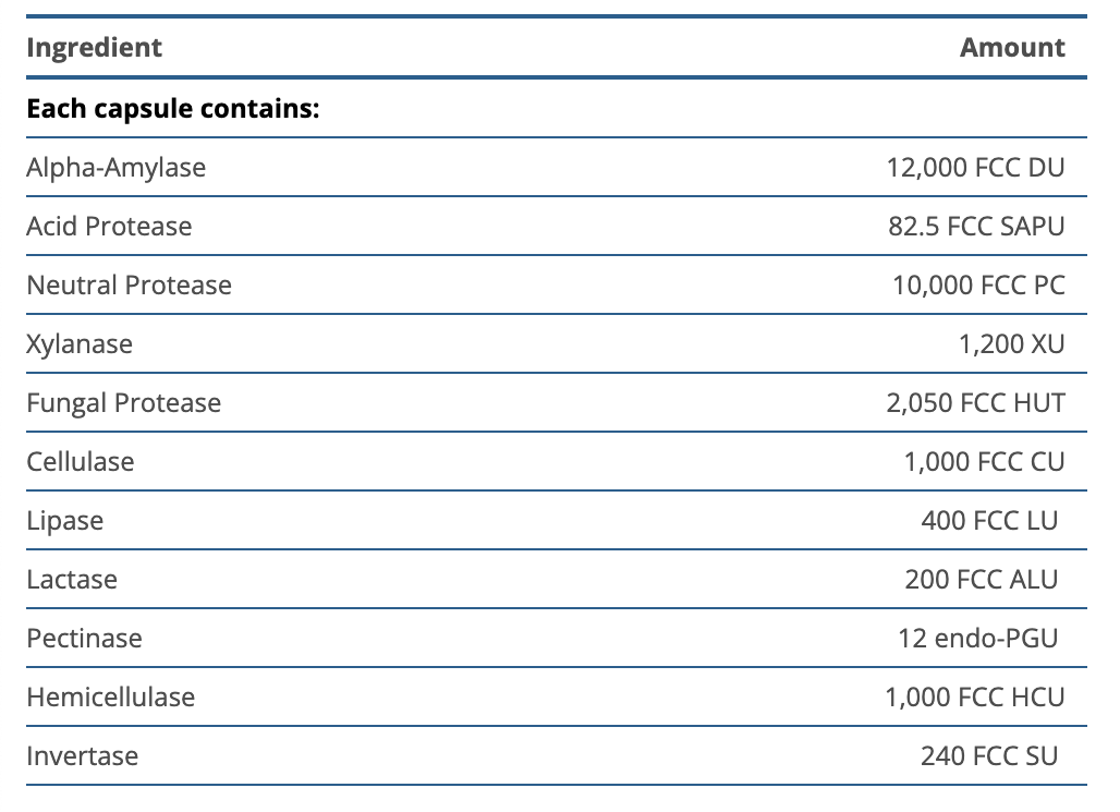 Alpha-Amylase ...... 12 000 FCC DUAcide Protease ...... 82,5 FCC SAPUNeutral Protease ...... 10 000 FCC PCXylanase ...... 1 200 XUFungal Protease ...... 2 050 FCC HUTCellulase ...... 1 000 FCC CULipase ...... 400 FCC LULactase ...... 200 FCC ALUPectinase ...... 12 endo-PGUHemicellulase ...... 1 000 FCC HCUInvertase ...... 240 FCC SU